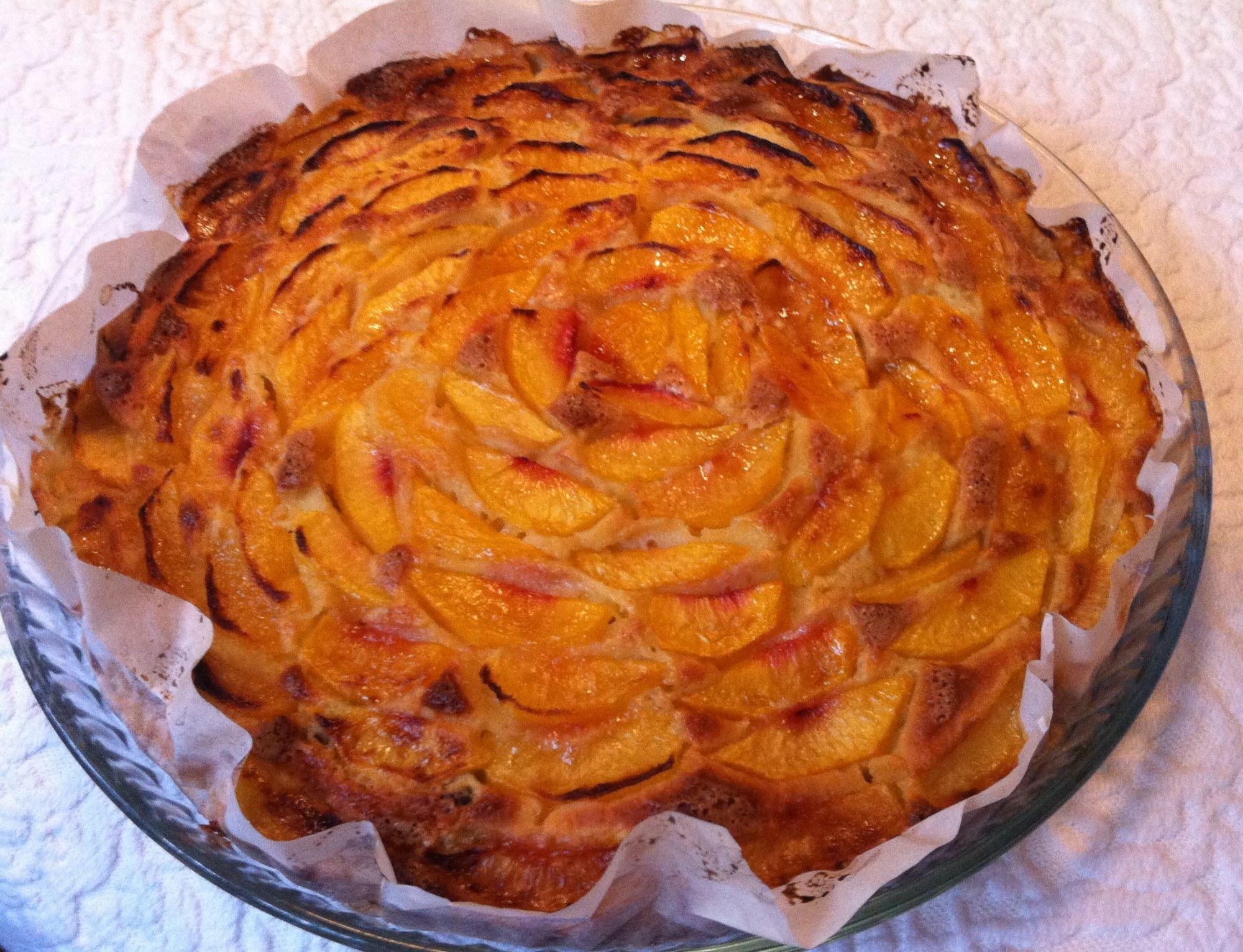 Quando l'impasto sarà bello omogeneo versarlo in una tortiera stampo a cerniera assieme alle pesche tagliate a pezzettini.
