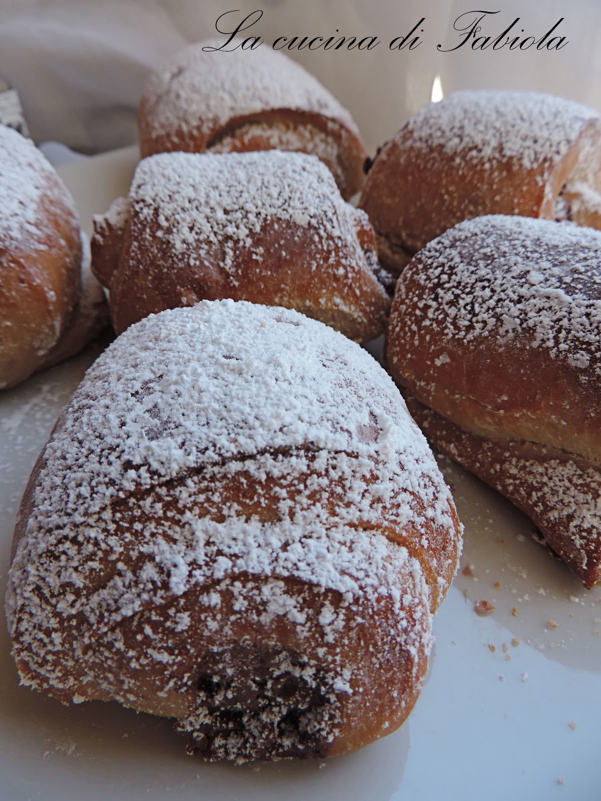Tagliate circa 12 strisce e ponete al centro un cucchiaino abbondante di nutella (io l'ho tenuta in freezer per mezz'ora circa).