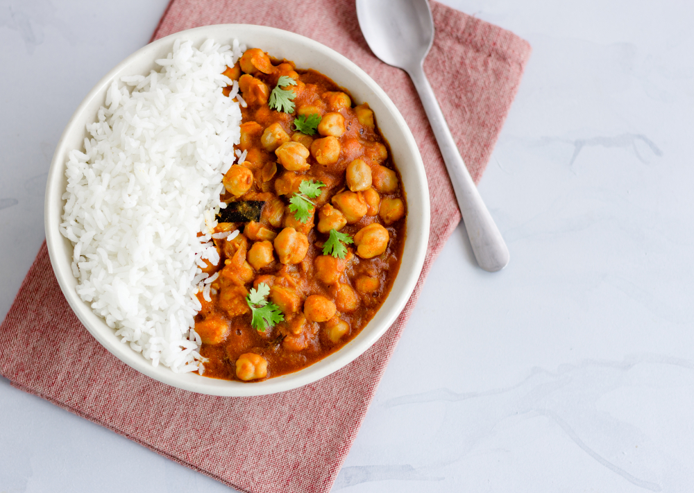 Servire lo stufato di ceci cosparso di prezzemolo fresco e riso.