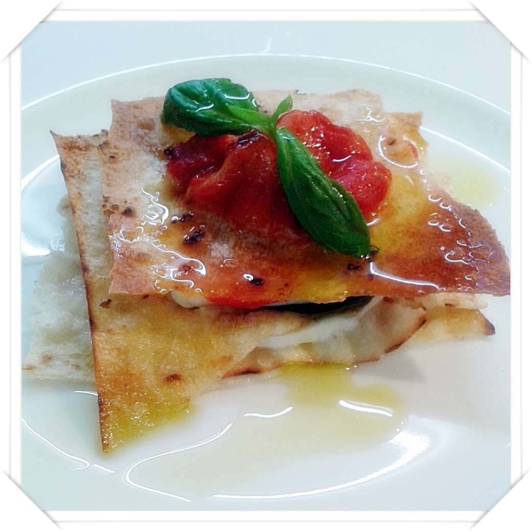 Millefoglie di pane carasau con mozzarella di bufala e basilico