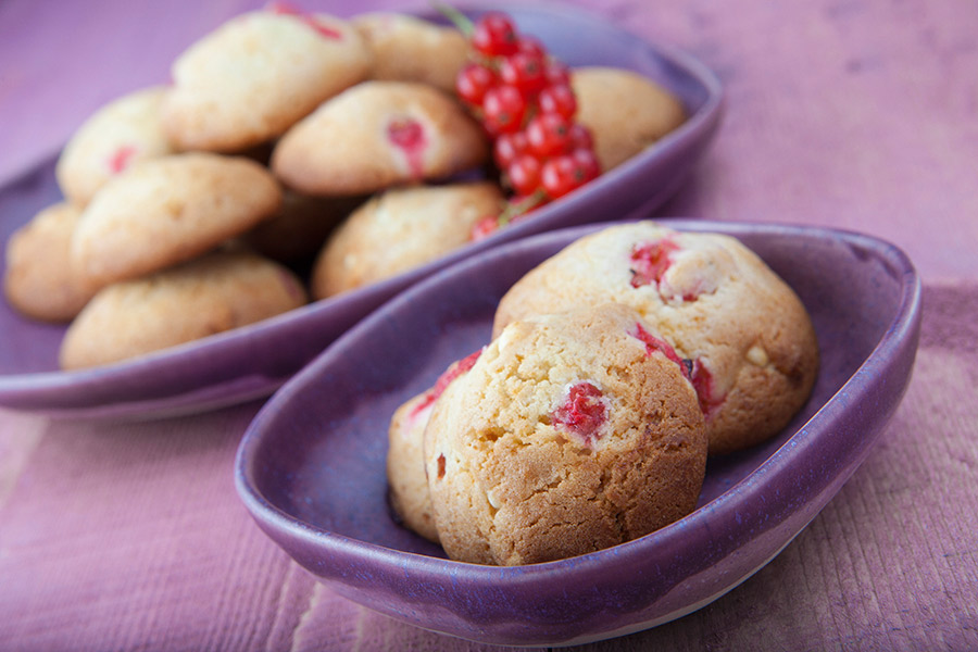 Morbidi biscotti addolciti dal cioccolato bianco, arricchiti di ribes per dargli un gusto particolare