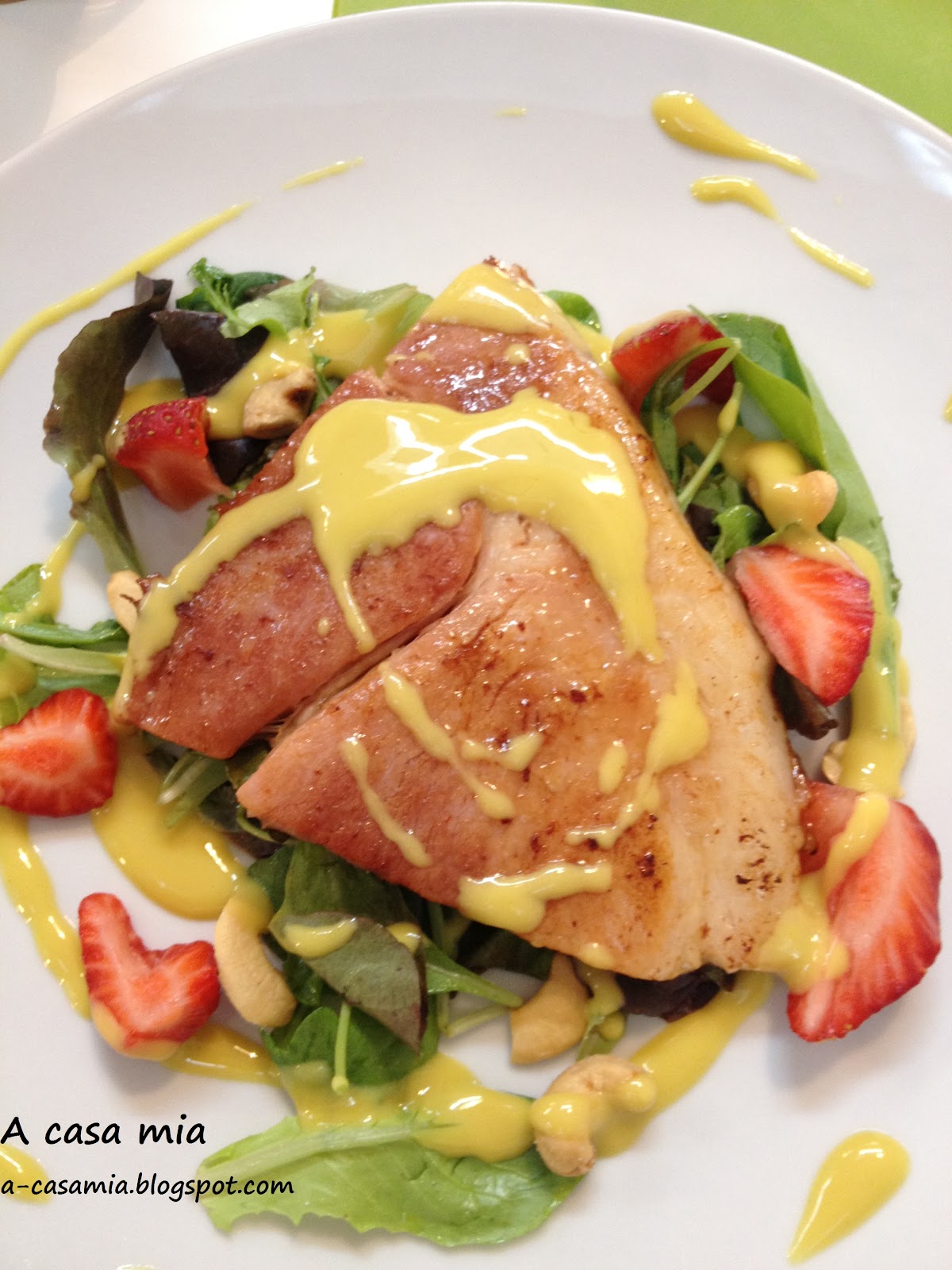 Bistecca di prosciutto cotto con insalata fragole e senape