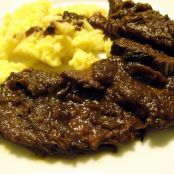 Rosolare 700 gr di carne di manzo, precedentemente infarinata, con una cipolla tagliata in 4, 2 foglie di alloro e ...