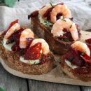 Bruschetta ai gamberetti e salame piccante