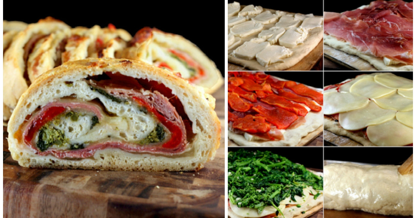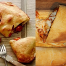 Saporito calzone con cipolle, panna, pancetta e taleggio