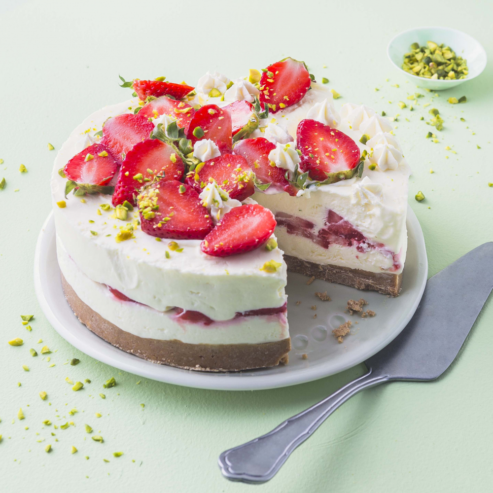 Golosa cheesecake alle fragole con mascarpone panna e yogurt senza cottura, perfetta come fine pasto