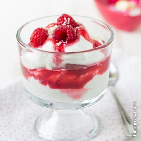 Coppette con mousse al cioccolato bianco e lamponi