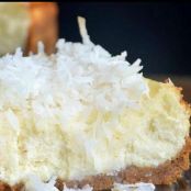 reparate la base della cheesecake al cocco sbriciolando i biscotti con le lame di un mixer e aggiungendo il burro f...