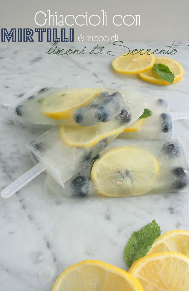 Ghiaccioli con succo di limoni di Sorrento e mirtilli