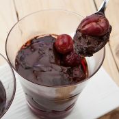 Mousse al cioccolato fondente accompagnate da una composta di ciliegie aromatizzate al pepe nero