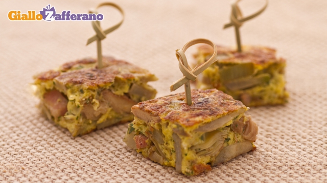 Frittata di carciofi, funghi e pancetta affumicata