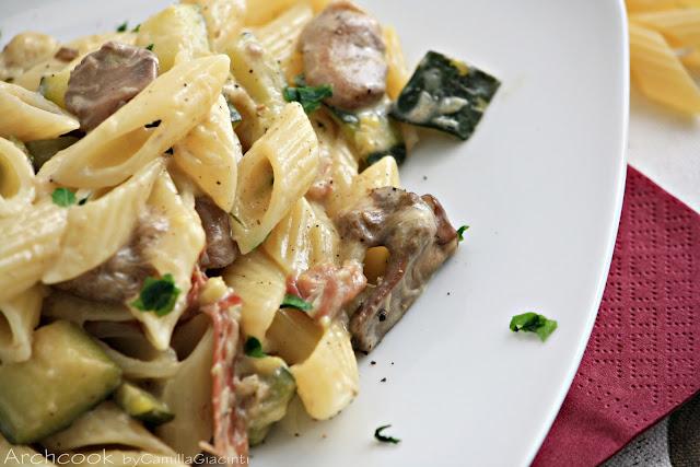 Pennette panna, funghi e speck