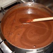 Intiepidire 1 lt di latte intero e aggiungere 700 gr di zucchero, 1 bustina di vanillina e 160 gr di cacao