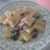- 500 gr paccheri pasta fresca; 1 mazzetto di rucola; speck in una sola fetta; un pezzetto di provola affumicata; olio d'oliva; sale q.b.; cipolla metà.