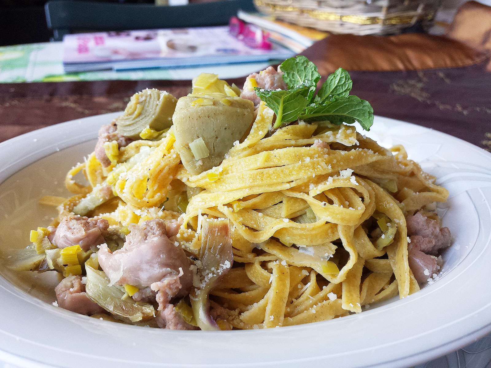 Tagliatelle salsiccia e carciofi