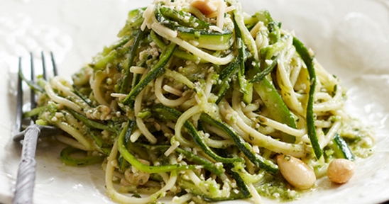 - zucchine, pinoli, mandorle, basilico, sale, olio, parmigiano, aglio, gamberi, pasta.