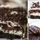 Le lasagne al cioccolato: un dolce dagli strati curiosi, che è una sorpresa continua...uan base di biscotti Oreo, quindi della mousse al formaggio, del budino al cioccolato e della panna montata, e per terminare gocce di cioccolato.