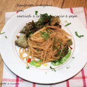 - 450 grammi di farina Senatore Cappelli, 200 grammi di acqua, 6 carciofi freschi, 3 fette di lardo di colonnata, pistilli di zafferano di Navelli, olio e. v. o., sale