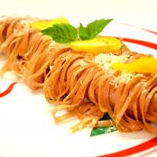 Un abbinamento di sapori dal gusto esotico per una pasta tiepida, giusta giusta per gli ultimi sprazzi di questa e
