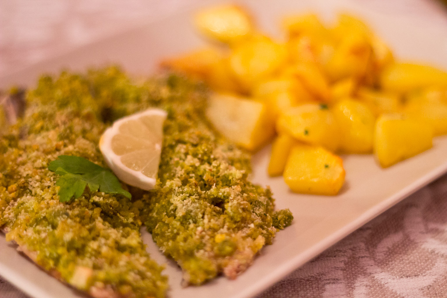 Filetti di pesce di lago croccante con patate