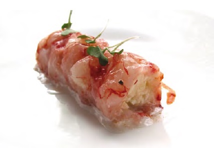 Cilindro di gamberi rossi con tartare di bufala campana agli agrumi