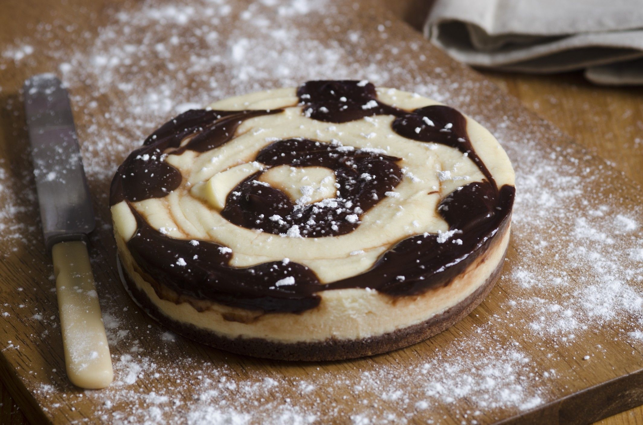 Cheesecake al cioccolato e caramello , una torta al cioccolato fondente, formaggio fresco magro e caramello, cremos...
