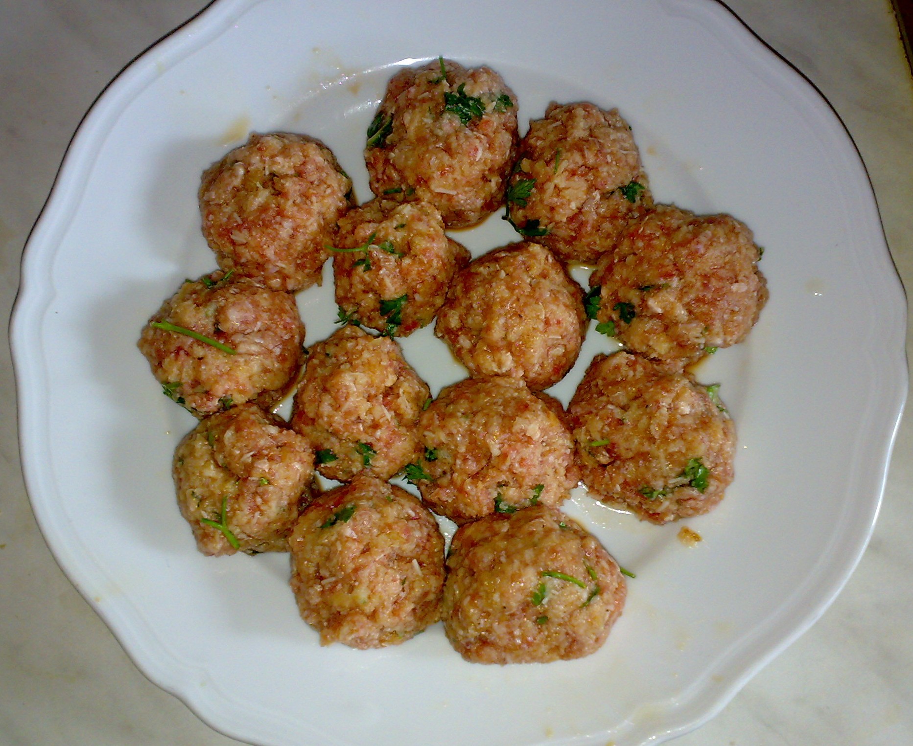 Si fanno le polpette con carne, il prezzemolo, il parmigiano, uova, patate