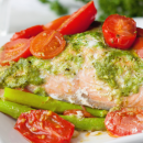 Una cena facile ed imbattibile: salmone al cartoccio con pesto e pomodorini
