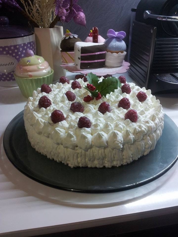 - Per la decorazione : 4 dl di panna fresca, 2 cucchiai di zucchero a velo, 70 gr. di lamponi, un albume, zucchero semolato per cospargere