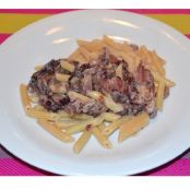 Lavare il radicchio e tagliarlo a listarelle Far appassire lo scalogno in un’ampia padella con l’olio, aggiung...