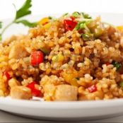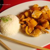 Riso integrale con pollo e verdurine in agrodolce