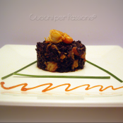 Riso venere con gamberi e polpo con fiori di zucchina croccanti