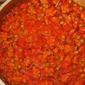 Preparare il sugo: rosolare in un pò di olio la cipolla, aggiungere la carne macinata ed i piselli, fate rosolare...