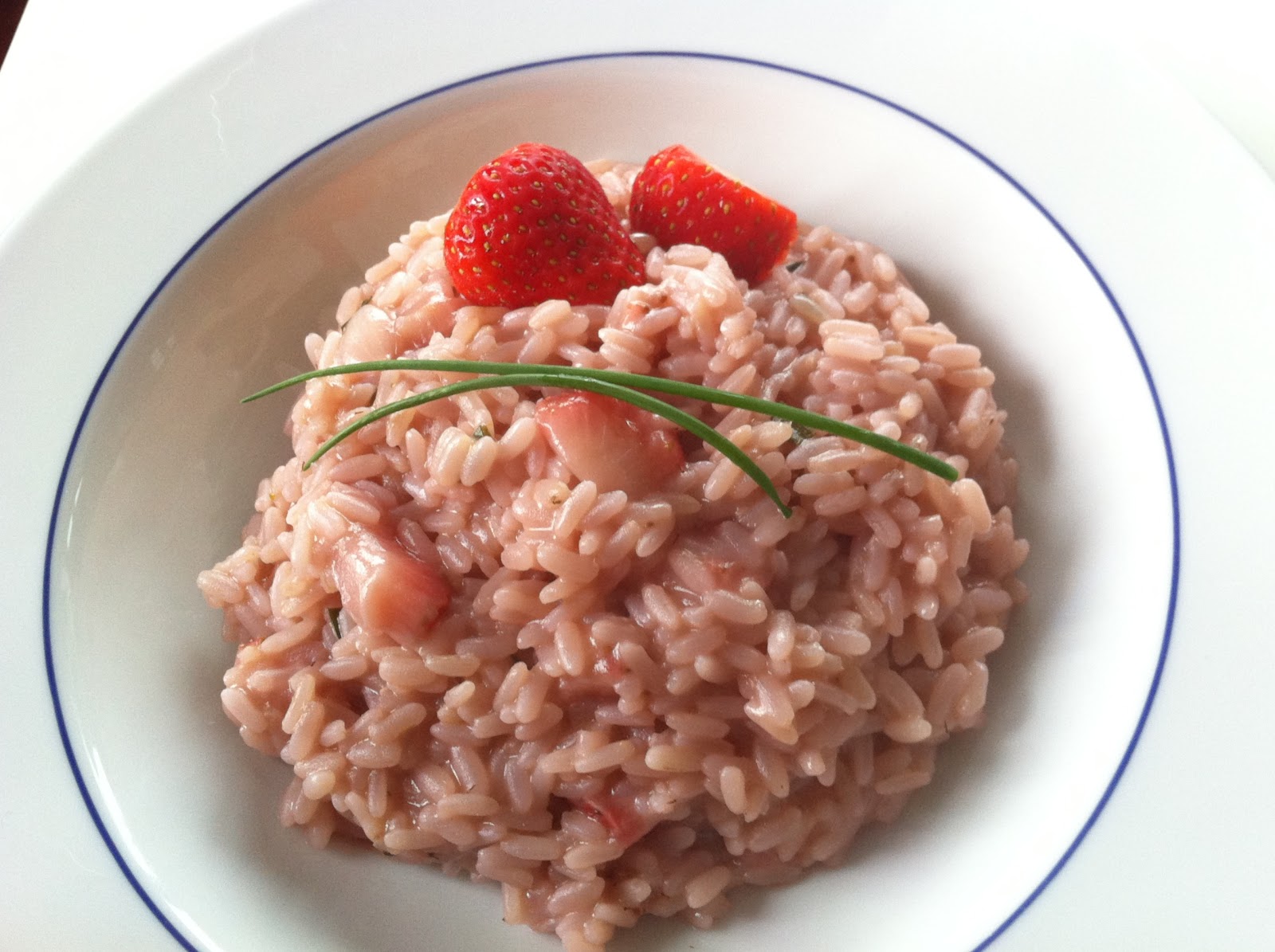 In una casseruola rosolare lo scalogno con 20 g di burro, aggiungere il riso (160 g) e farlo rosolare