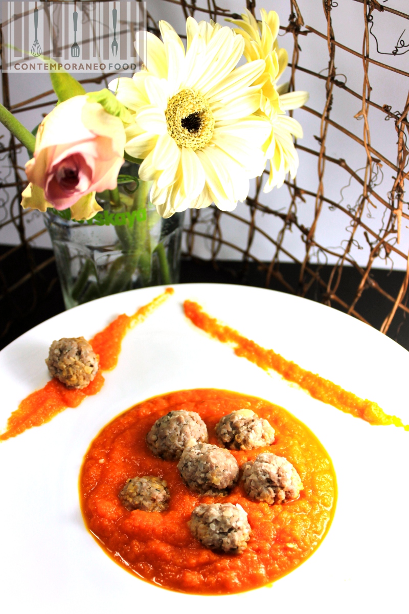 Vellutata di carote con polpettine di maiale e mandorle al profumo di menta