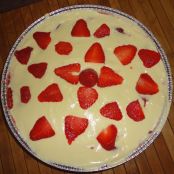 Mescolare la crema e la panna; stendere uno strato di savoiardi (bagnati con il caffè) e versarvi il primo stato...