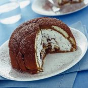 Foderare uno stampo da zuccotto da 16 cm con della carta da forno, bagnate i 2 terzi dei savoiardi nel caffè