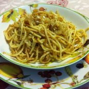 Faccio bollire l'acqua salata e poi ci butto gli spaghetti , nel frattempo faccio rosolare in una padella con un fi...