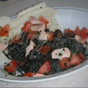 Spaghetti al nero di seppia con salmone e pomodoro fresco