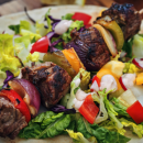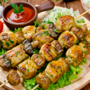 Spiedini di vitello, ideali per una grigliata estiva, da servire con una rifrescante salsa al cetriolo
