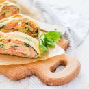 Rotolo di spinaci ripieno di Philadelphia, prosciutto crudo e capperi
