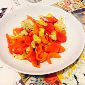 - 500 g. petto di pollo a tocchetti, 1 peperone rosso e 1 giallo, 1 cipolla grande,germogli di bambù, 1 carota,1 costa di sedano,1 cucchiaio di concentrato di pomodoro,mezzo bicchiere di acqua,3 fettine di ananas possibilmente fresca, 3 cucchiai di olio evo (io) biologico Tripodi, 1 cucchiaio di zucchero, 80 ml. di aceto di vino bianco, 3 cucchiai di salsa di soia, 2 cucchiaini di amido di mais,un pizzico di sale,radice di zenzero grattugiata (poca), 300 g. di riso integrale.