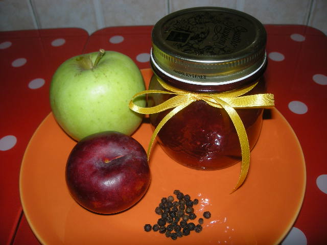 Carpaccio di pere forelle dure con scaglie di grana, susine e balsamico