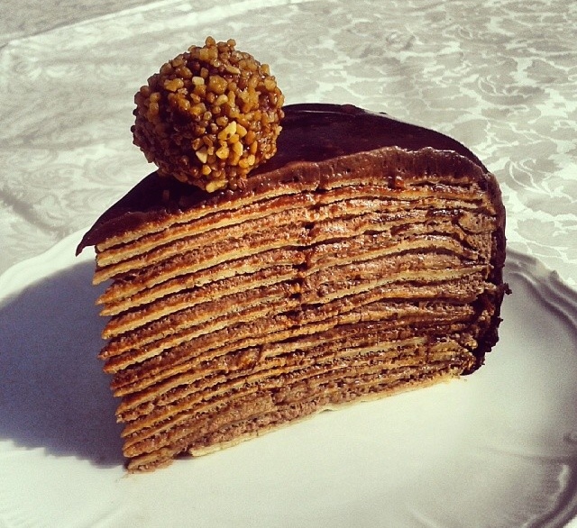 Torta di crepes alla Nutella, deliziosa torta a piani, con Nutella, Ferrero Rocher e nocciole