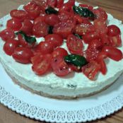 La cheesecake al basilico e pomodorini è una deliziosa torta salata che si prepara proprio come la cheesecake dolc...