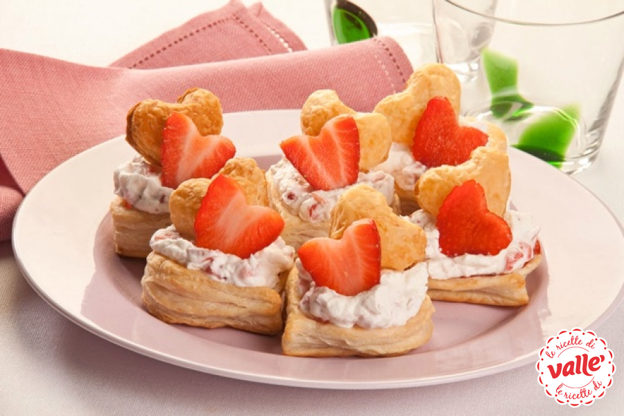 Ritaglia dal rotolo di pasta sfoglia 12 cuori con un tagliapasta, a 6 di questi ritaglia l’interno con un cuore p...