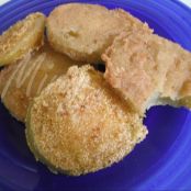 Tortino di polenta verde con crema di piselli e anelli di cipolla fritti